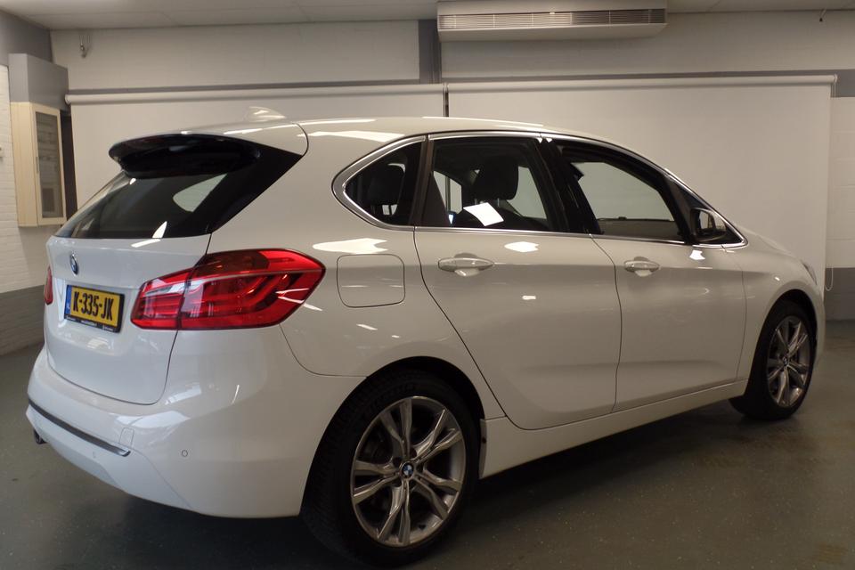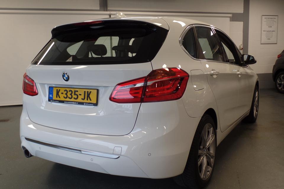 Bij de bouw van de BMW 2-serie Active Tourer wordt niets aan het toeval overgelaten. Vandaar dat hier een auto staat die in optimale conditie verkeert. De aandrijving van deze BMW wordt verzorgd door een driecilinder benzinemotor en een automatische transmissie. Een lederen interieur: een toonbeeld van luxe en comfort. En wat dacht u van de elektrisch bedienbare achterklep? In- en uitladen gaat haast vanzelf! 's Winters komen de verwarmbare voorstoelen heerlijk van pas. Xenonverlichting zorgt in het donker voor beter zicht. Bij de zeer complete uitrusting van deze auto behoren ook 18 inch lichtmetalen velgen, LED koplampen, getint glas, in delen neerklapbare achterbank en snelheidsafhankelijke stuurbekrachtiging.